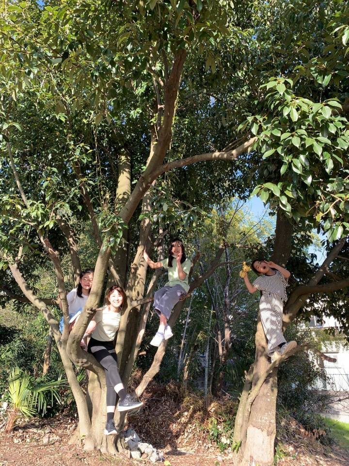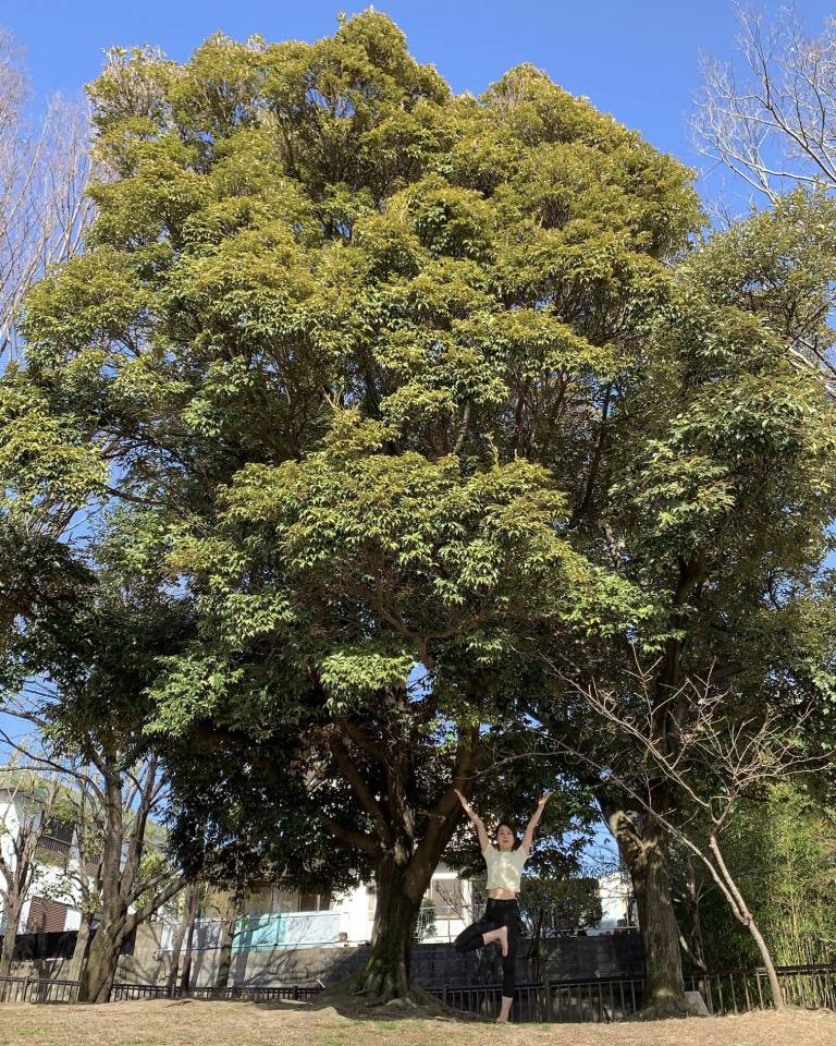 大きな木の前で木のポーズ🌳