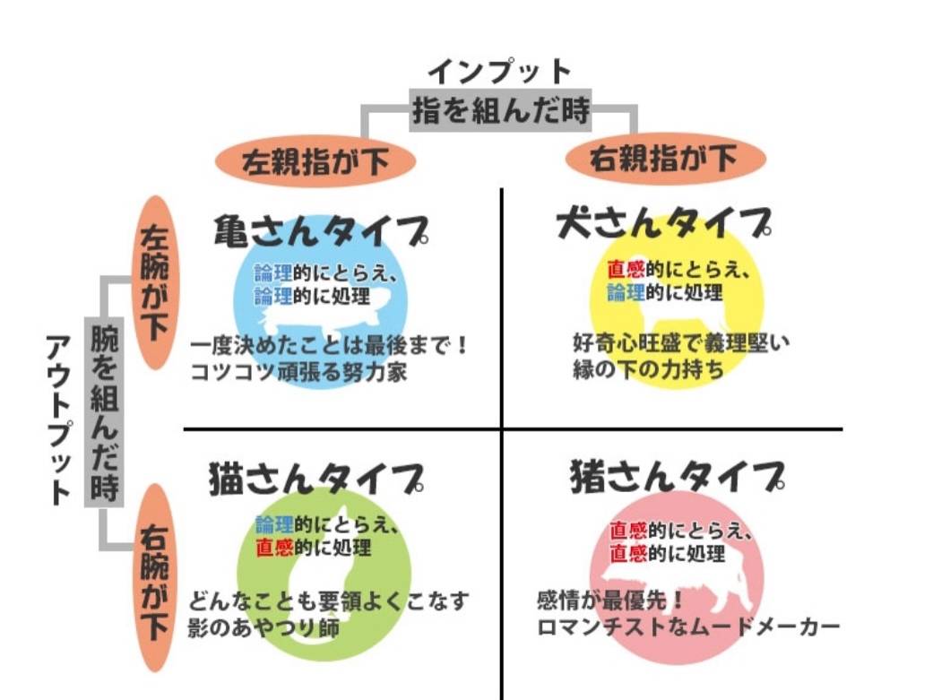 指組みはインプット、腕組みはアウトプットの特性に関係します