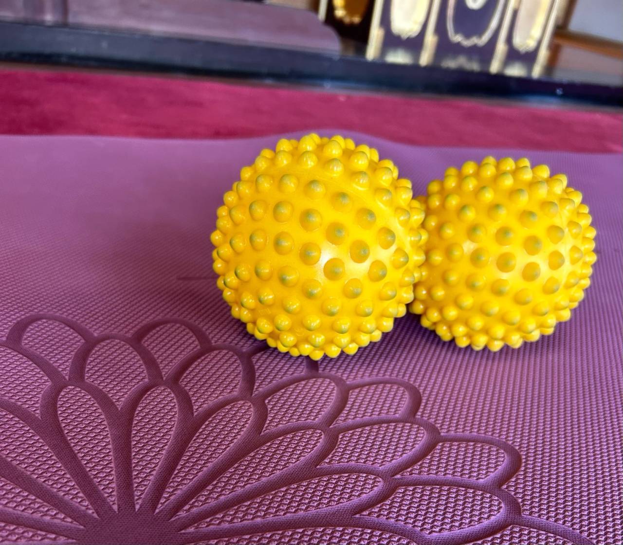 黄色いトゲトゲボールでほぐし、ヨガポーズ🧘♀️