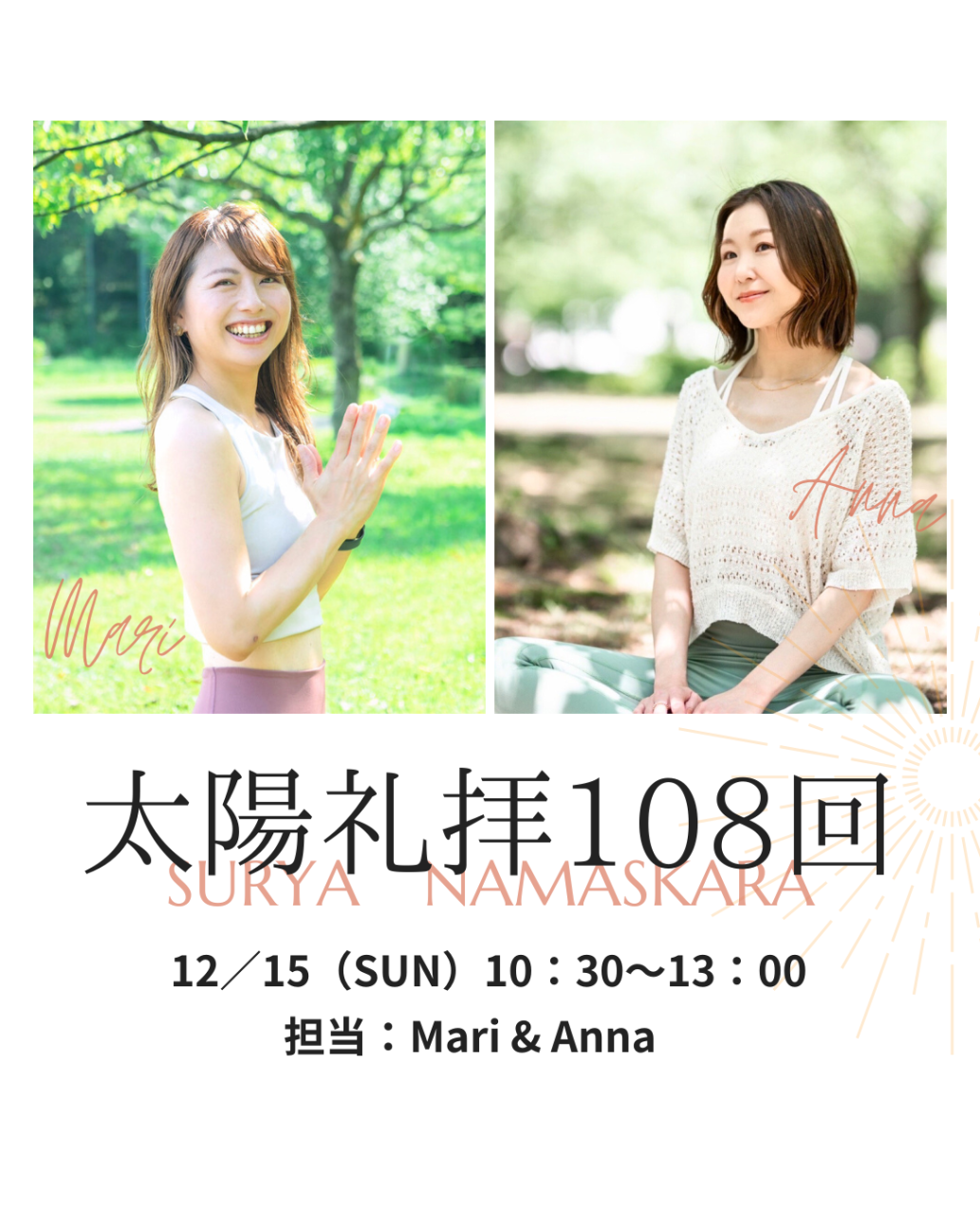 12月15日太陽礼拝108回開催します!