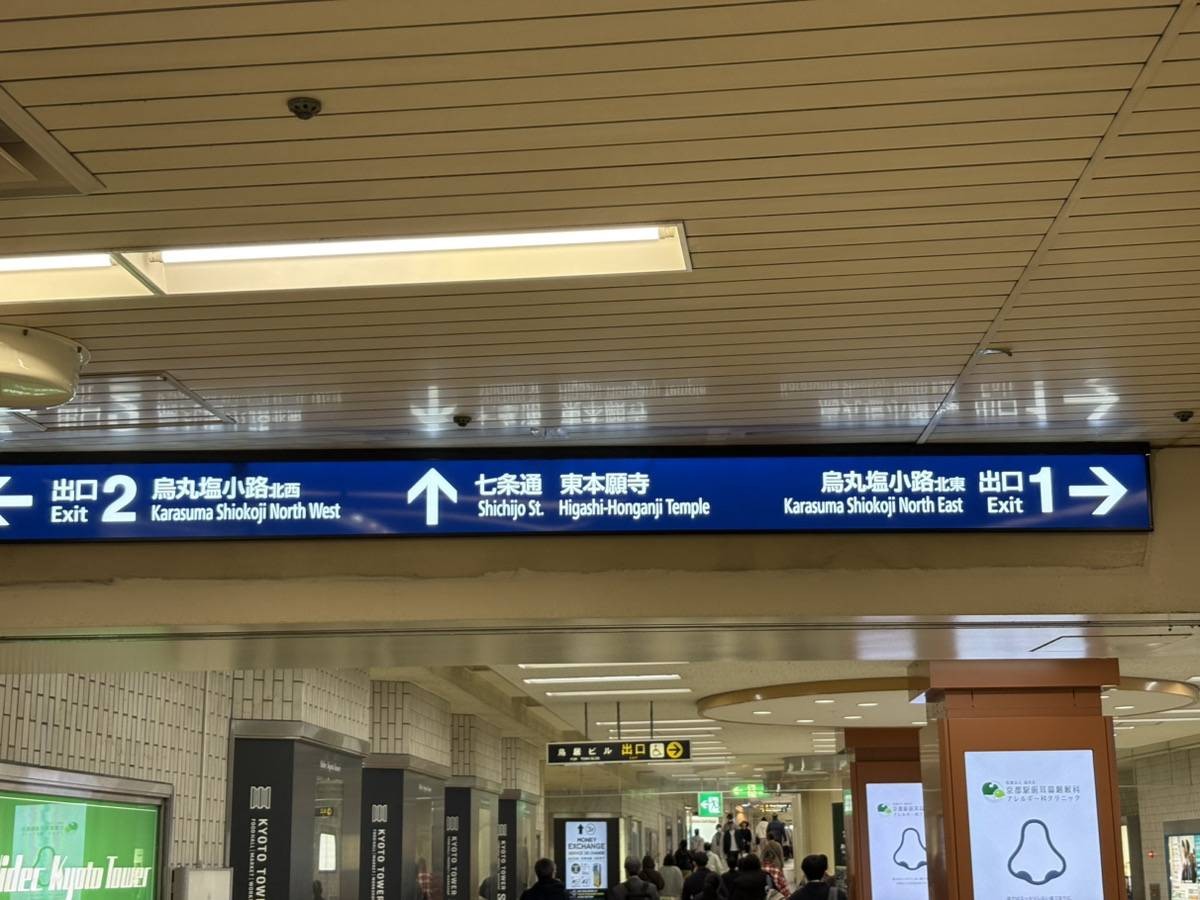 京都駅地下東口出口から京都駅の地下ポルタの 地下道を東本願寺を目指して歩きます