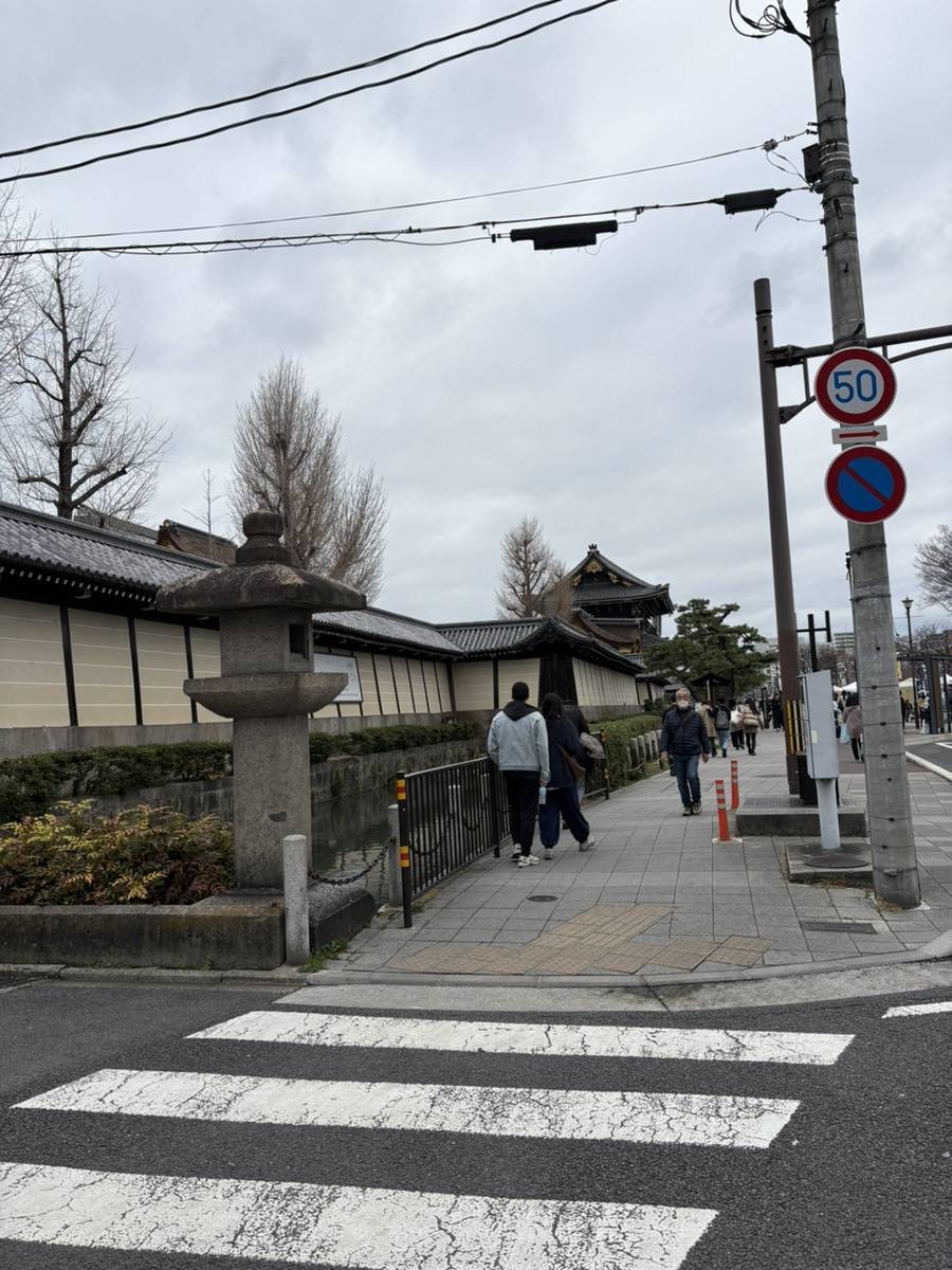 地上に出たら横断歩道を渡り、東本願寺前を北に向かってまっすぐ歩きます